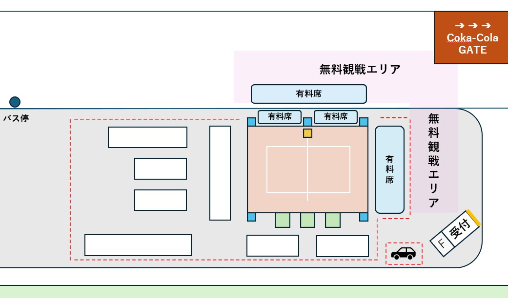 今大会は多くの方に観戦いただけるように、有料席エリアにテントの設置はありません。