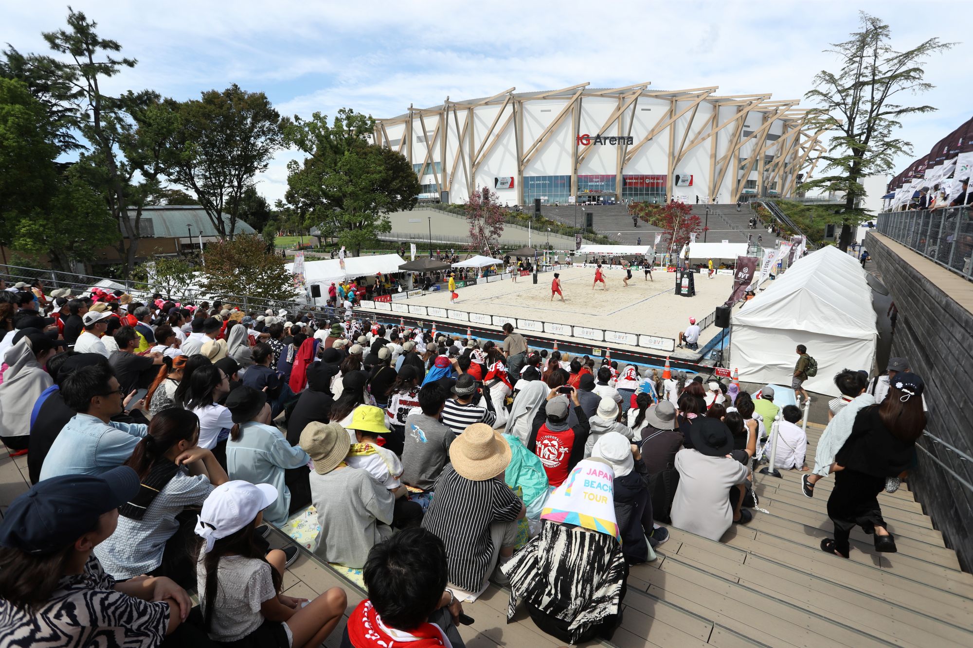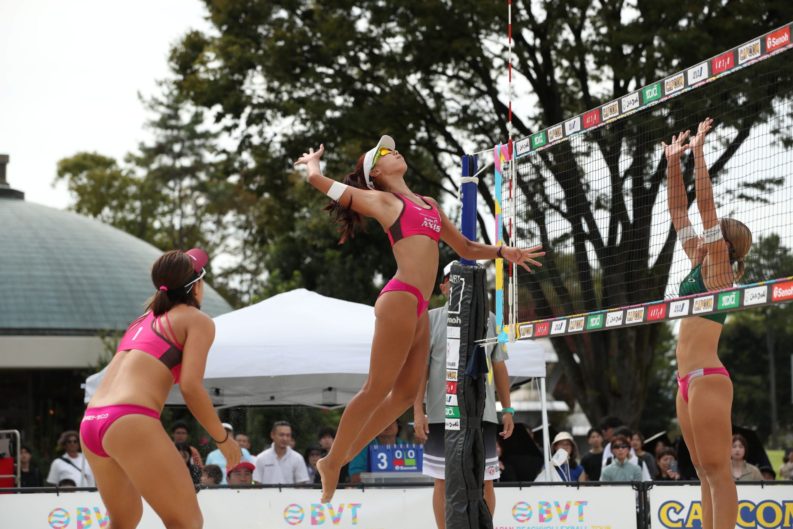 ジャパンビーチバレーボールツアー2025 第8戦 名古屋大会。名城公園tonarinoに設置されたビーチバレーボールコートも風物詩となってきた本年は、IGアリーナの開業に伴い会場風景も一変。これまでとは違った雰囲気のなかでの大会となりました。