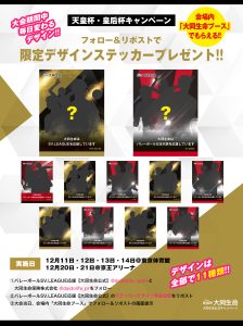 大同生命ブースでは公式Xフォロー&リポストキャンペーンを開催!毎日日替わりでステッカーを用意してお待ちしております!詳細は大会当日、バレーボールSV.LEAGUE応援【大同生命公式】をご覧ください!