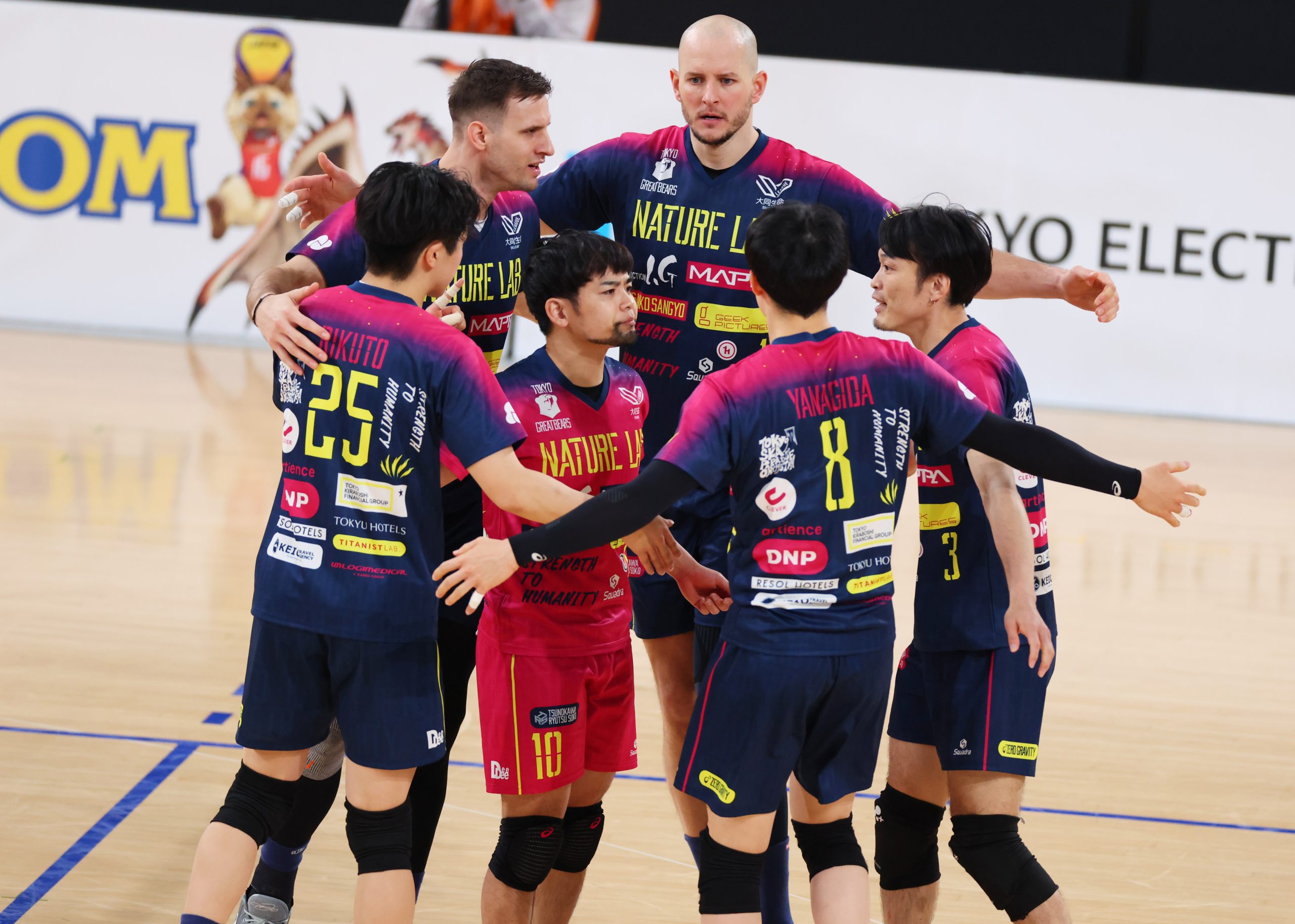 ここからは男子が行われ、第3試合はヴォレアス北海道vs.東京グレートベアーズのカードになります。ヴォレアス北海道は準々決勝において、前回大会王者のサントリーサンバーズ大阪を撃破。相手の強力なサーブをリベロの外崎航平選手やエストニア籍アウトサイドヒッターのタンメアル・マート選手がしっかりと返球し、セッターの山岸隼選手が幅広い攻撃を組み立てました。対する東京グレートベアーズもセッターの深津旭弘選手がスピード感にあふれるトスワークを繰り出し、かつポーランド籍オポジットのクレク・バルトシュ選手やスロベニア籍ミドルブロッカーのコザメルニク・ヤン選手そしてアウトサイドヒッターの後藤陸翔選手らを軸としたダイナミックな攻撃で勝機を手繰り寄せます。