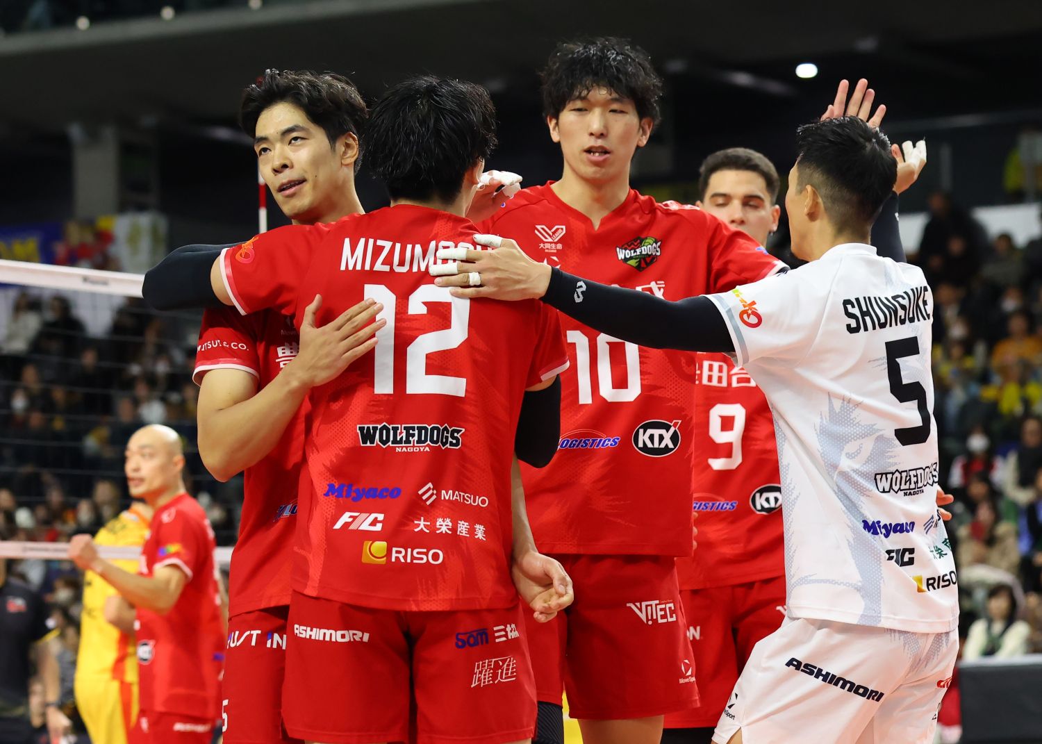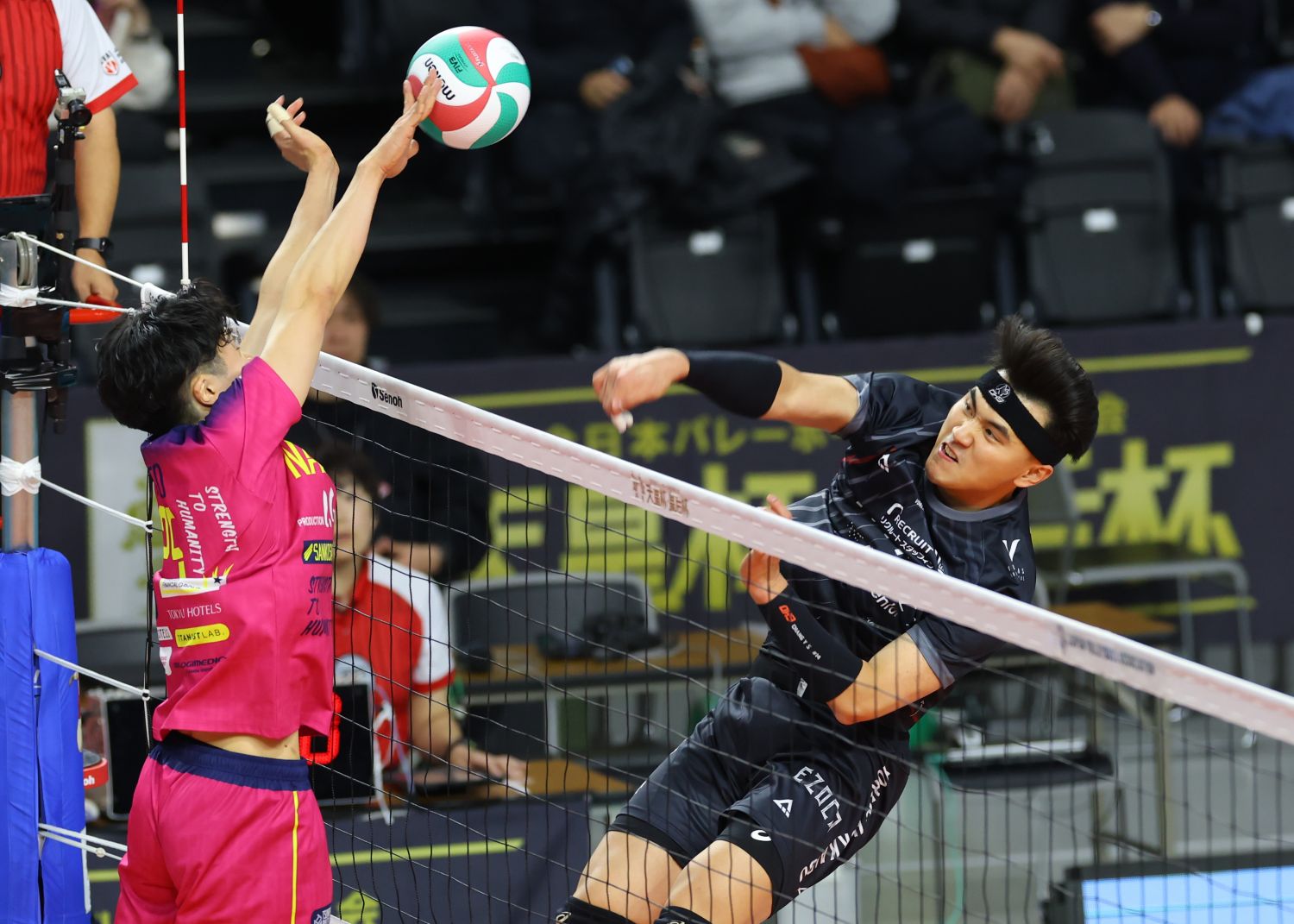 男子の第1試合は、ともに初優勝を目指すヴォレアス北海道対東京グレートベアーズの試合となりました。ヴォレアス北海道が2セットを連取されますが、リベロの外崎航平選手の好レシーブや三好佳介選手のブロックポイントで第3、4セットを奪い返します。第5セットも三好選手の連続ブロックが決まりセットカウント3-2(24-26、23-25、26-24、25-20、15-11)の逆転勝利で、初の決勝進出を決めました。第2試合は本拠地を愛知県に置くチーム同士の一戦、ウルフドッグス名古屋対ジェイテクトSTINGS愛知。ウルフドッグス名古屋は、終盤まで競った第1セットを取ると、佐藤駿一郎選手がクイックやブロックで得点を重ね第2セットも奪います。第3セットは宮浦健人選手や水町泰杜選手のバックアタックが決まりセットカウント3-0(25-22、25-17、27-25)のストレートで勝利しました。この結果、決勝はヴォレアス北海道対ウルフドッグス名古屋となりました。