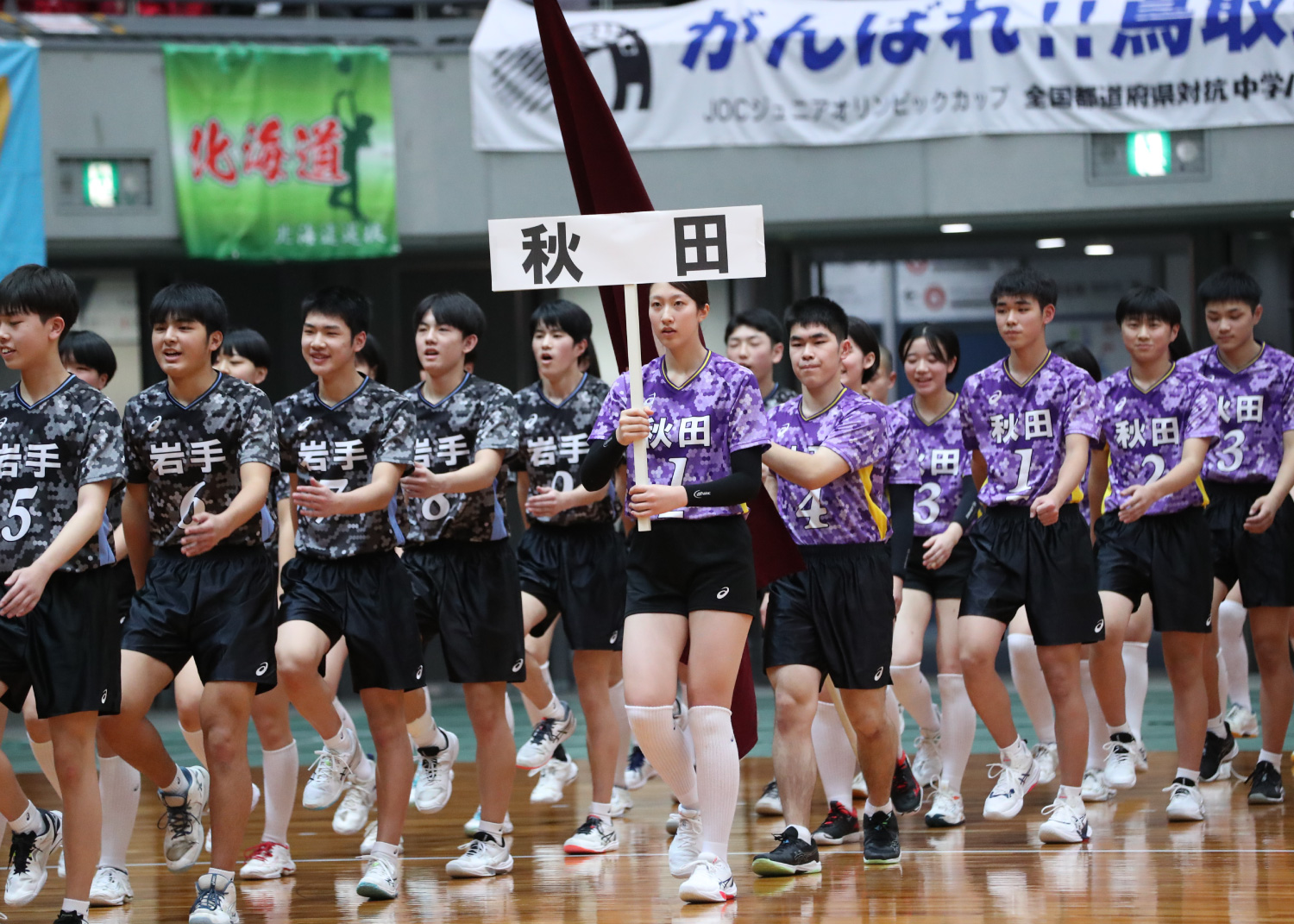 JOCジュニアオリンピックカップ 第39回全国都道府県対抗中学大会が12月25日(木)、Asueアリーナ大阪(大阪市中央体育館/大阪府大阪市)で開会式を迎え、各都道府県の選抜男女それぞれ48チーム(大阪府は北と南の2チーム)の選手が一堂に会しました。