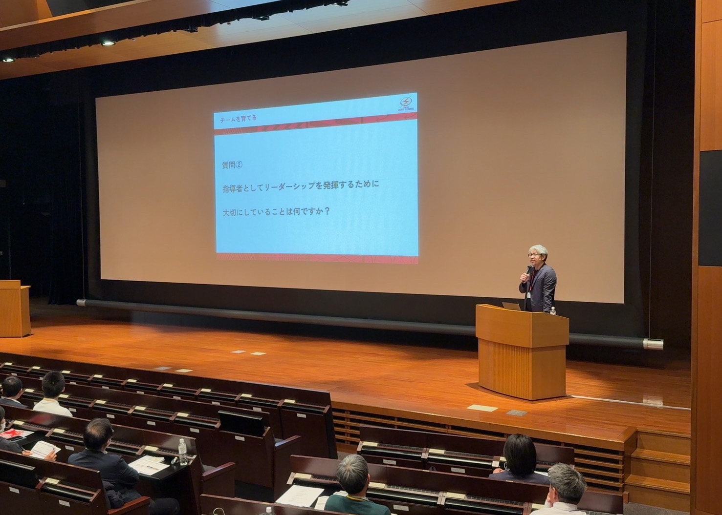 カンファレンスは5部構成で実施され、1部ではバレーボール女子日本代表のフェルハト・アクバシュ監督が「World’s Top Level Team Building」というテーマで、自身の経験談を交えながら受講者とコミュニケーションを取りました。
